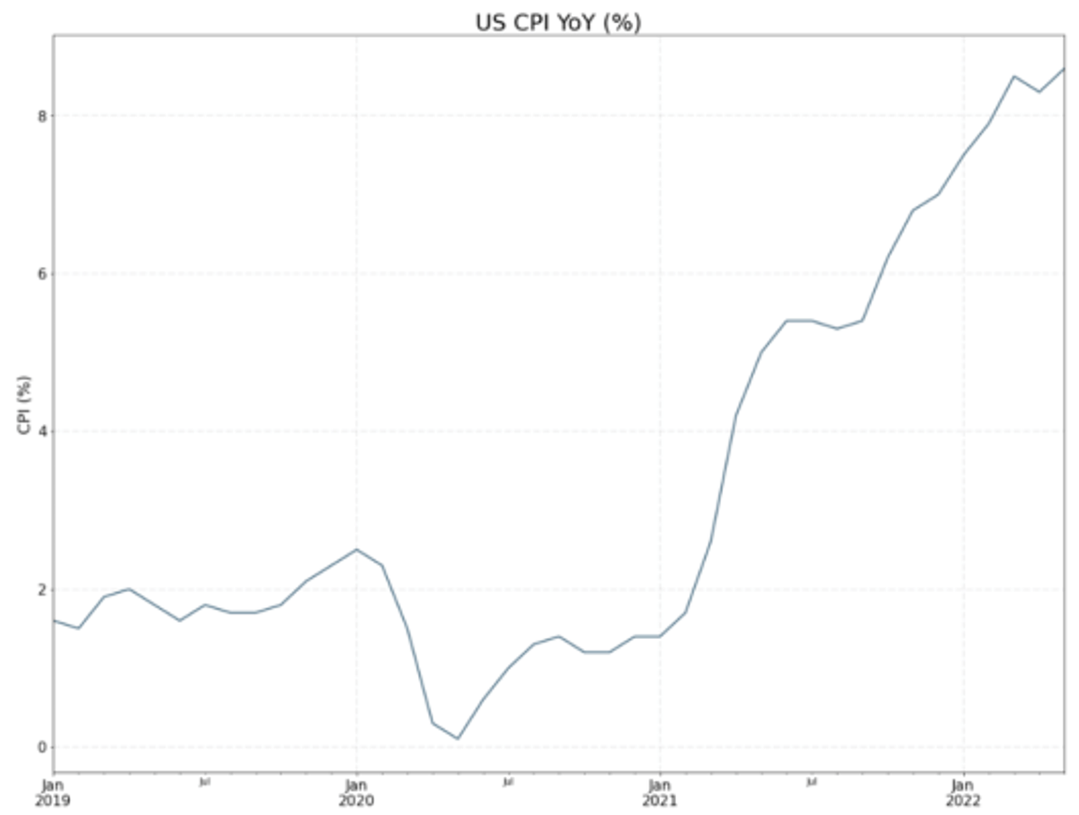 O que selou a decisão do FOMC foi Índice de Preços ao Consumidor de maio que, com alta de 1,0%, veio significativamente acima da (já elevada) mediana de expectativas de 0,7%. Com o número de maio, a inflação de 12 meses atingiu 8,6% — patamar mais alto em 40 anos. Na fatídica reunião de junho, Powell renegou sua palavra e chancelou a alta de 0,75% no Fed Funds, elevando a taxa básica ao intervalo 1,5%-1,75%.