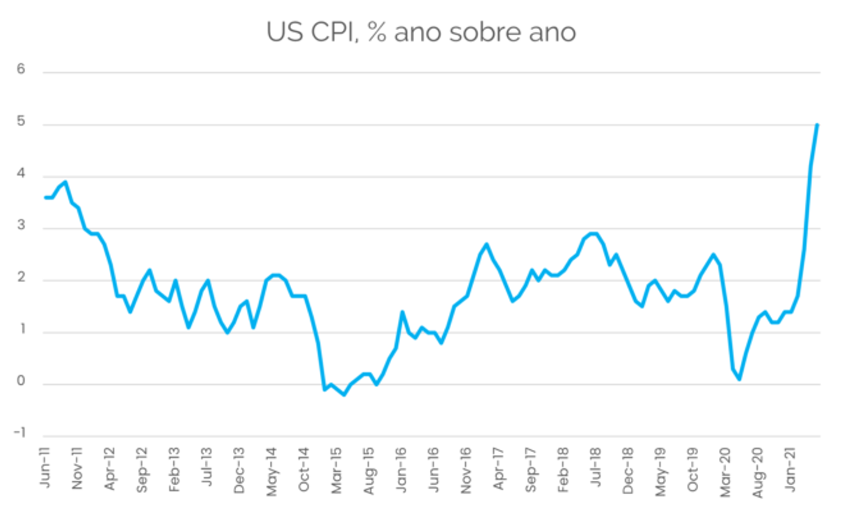 *Nota do autor: o US CPI de junho, que saiu enquanto essa carta ia para a gráfica, também veio bastante alto: 0,9%. Mais uma vez, a surpresa foi alta: a mediana das previsões na Bloomberg era 0,5%.