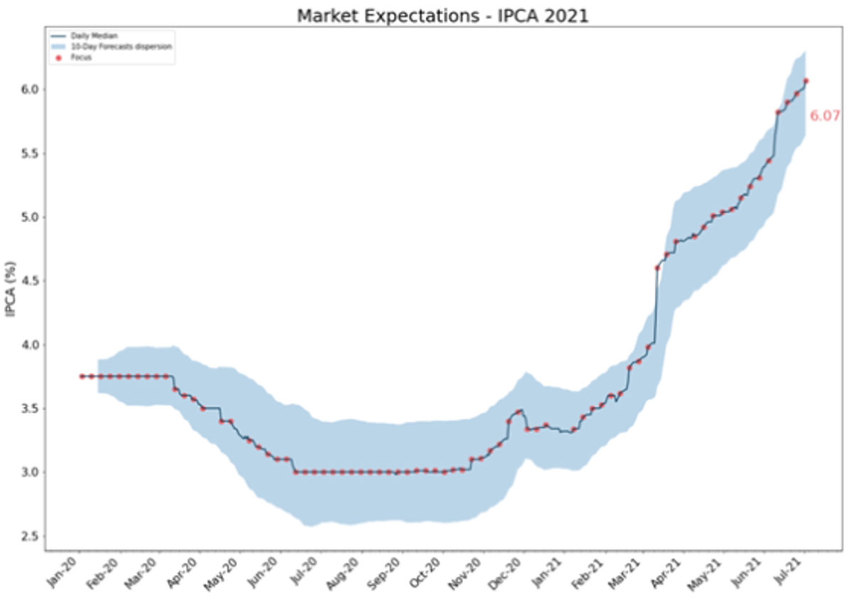No começo do ano, 37 analistas consultados pela Bloomberg submeteram suas estimativas para a variação de dezembro do IPCA – o índice de preços ao consumidor calculado pelo IBGE, que é usado como referência pelo Banco Central do Brasil para a meta de inflação. O índice, que havia caído nos primeiros meses da pandemia com o tombo na demanda por serviços, começou a se acelerar no segundo semestre de 2020 (sobretudo, preços de alimentos). Outubro e novembro haviam registrado altas fortes, acima de 0,80%. Para dezembro, a previsão mais otimista era de 1,00%.