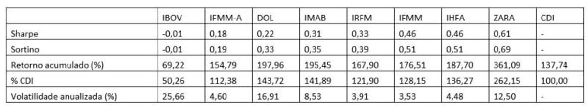 Performance do fundo Zarathustra FIC em comparação a benchmarks do mercado brasileiro.