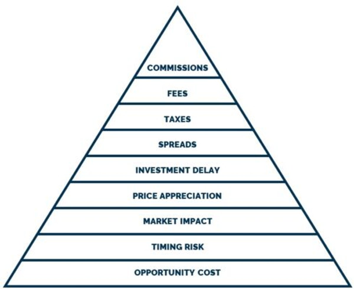 Se indagarmos 10 gestores profissionais, escolhidos aleatoriamente, me surpreenderia se um deles sequer mencionasse esse ponto. Encontrar um gestor que mencione consistentemente sua eficiência ao operar no mercado é bastante raro. Todos costumam focar na mesma narrativa: “Temos um time altamente capacitado, formado por traders que estão há décadas no mercado e acostumados a operar grandes volumes. Por isso, conseguimos executar nossas posições com maestria e custo mínimo”. Se formos além e pedir para verificar a análise de custos, eles mostrarão custos de corretagens mínimas negociados com seus prime brokers e, os mais sofisticados, vão mostrar os custos de spread quando montam suas posições. Nada disso, entretanto, conta a história completa da eficiência de um gestor. Custos de corretagens, emolumentos, spread, são apenas os efeitos primários que são mensurados facilmente quando um gestor monta uma posição. O verdadeiro trabalho, e onde a eficiência pode realmente erodir o retorno de um gestor, é identificar como o organismo vivo do mercado se comporta quando entra uma nova ordem, ou sequência de ordens. Esse comportamento é chamado de impacto. O pesquisador Robert Kissell caracteriza os custos de uma ordem em 8 layers:
