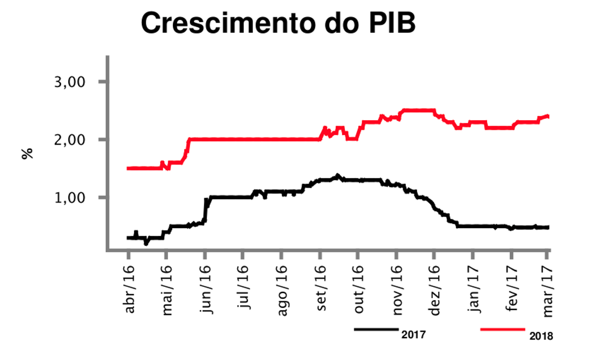 Temer se agarra aos incipientes efeitos positivos de suas políticas econômicas, sobretudo à inflação cuja queda consistente possibilitou ao COPOM promover o segundo corte de 75bps, em fevereiro. O desemprego continua a aumentar (atingiu 12,9 milhões de desempregados em fevereiro) na esteira da queda da atividade. Há indícios, contudo, que a recessão tenha batido no fundo do poço. De fato, após um recuo de 3,6% em 2016, analistas esperam um crescimento de 0,5% em 2017 e 2,4% em 2018.