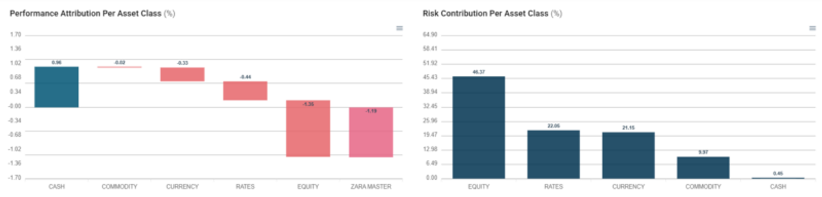 Em março, o resultado do Zarathustra foi de –1,24%. Os principais ganhos vieram das posições long-short não direcionais em equities US e posições vendidas em dólar contra emergentes, destaque para rúpia indiana.