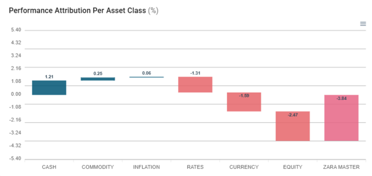 Em março, o resultado do Zarathustra foi de -3.34% – (versus 1.21% do CDI). O book de trend em commodities foi o principal promotor de performance, com destaques para as agrícolas. O principal detrator de performance foi o book local de Equities Long-Short Market Neutral, com destaques para os setores de Financials – de maior ganho, e de Consumer Discretionary – de maior perda. Em geral, as posições long foram prejudicadas e as posições short foram beneficiadas (com principal exceção o setor de Energy, onde essa lógica se inverteu). O book de trend em juros foi prejudicado pela alta volatilidade do mês, sendo o segundo maior detrator de performance do fundo. O book de estratégias de alta frequência também teve performance negativa.