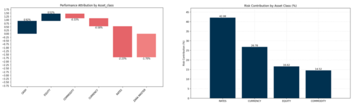 O fundo começa dezembro com posições aplicadas em juros locais, vendidas em dólar contra o real e compradas em bolsa local e equities ao redor do mundo. O fundo inicia o mês com viés tomado em juros offshore, porém com redução do risco, bem como em commodities, com destaque para petróleo.
