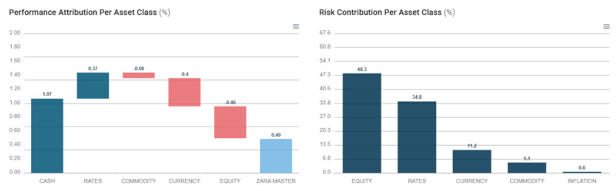 O maior detrator do período foi o book local de equities long short, com destaque negativo para shorts em Tech e Utilities. O book de FX também foi detrator, com posições compradas em dólar contra uma cesta de moedas.