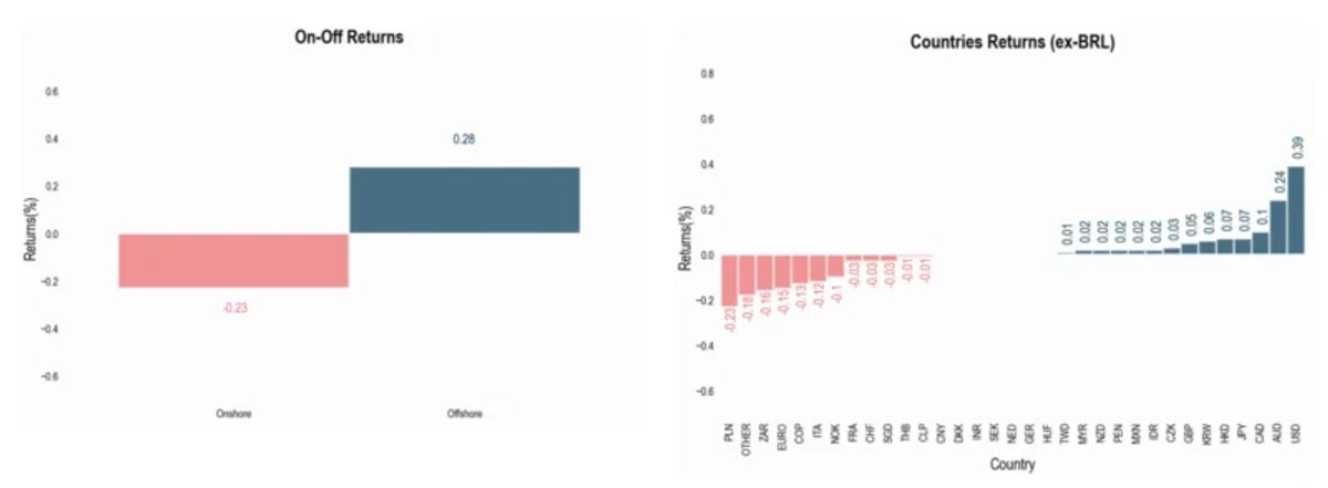Somada à declaração do presidente desvalorizando o déficit primário zero em 2024, que reforça a incerteza do mercado quanto à trajetória das contas públicas, temos um cenário geopolítico volátil e incerto, com duas guerras relevantes, além de juros altos nos EUA, apesar da manutenção da taxa pelo Fed. Tais fatores impactaram negativamente as posições vendidas em dólar contra real, aplicadas em juros locais e o book de equities Brasil, que não conseguiu capturar um direcional claro ao longo do mês.