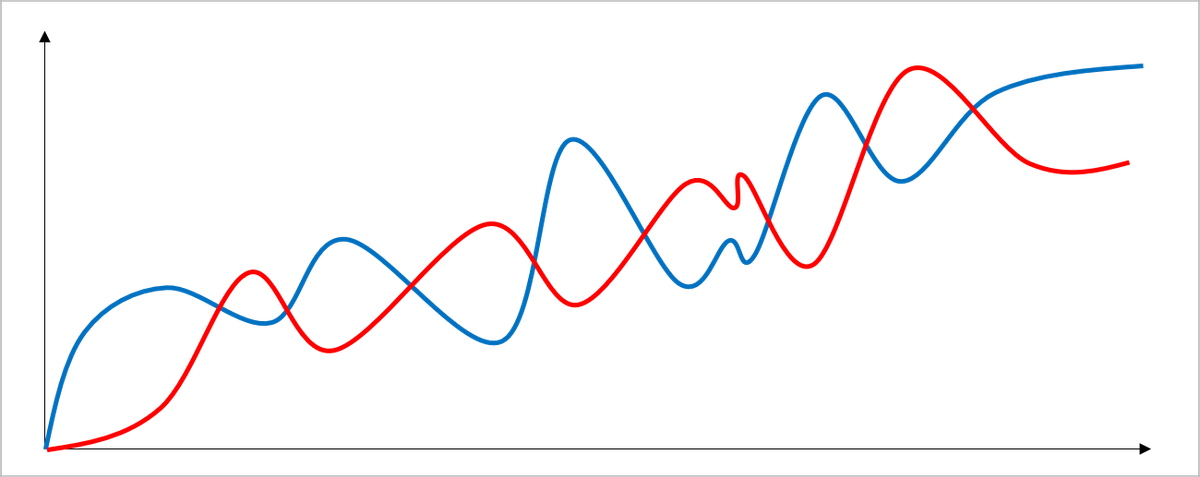 Para entender de uma forma visual, observe o gráfico de retorno de dois ativos: