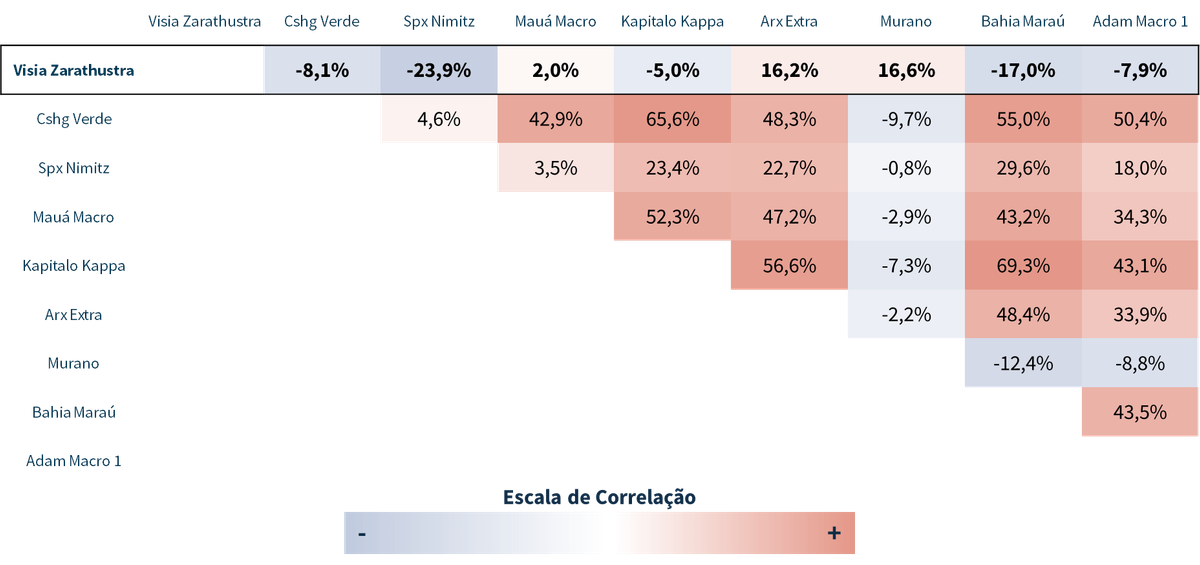 Na tabela abaixo, temos a correlação do Zarathustra com alguns dos principais fundos brasileiros no ano de 2018: