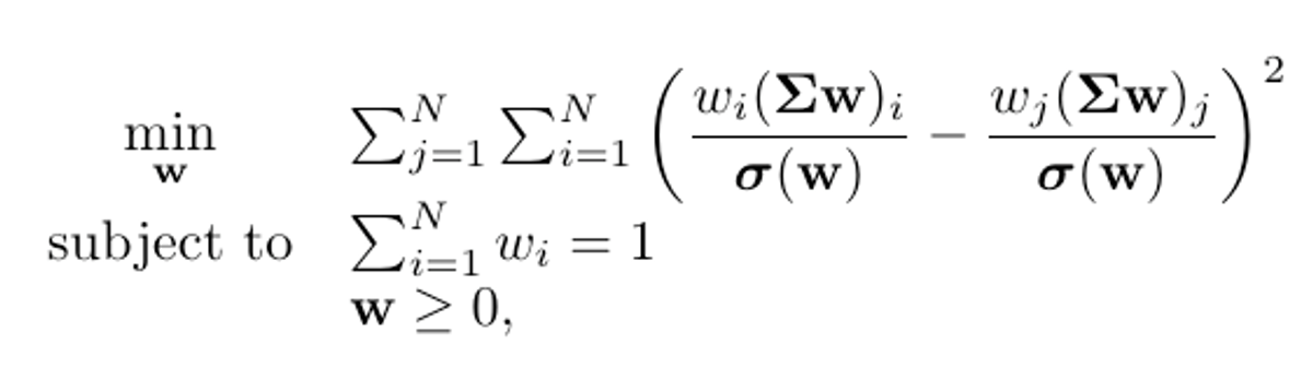 Para formalizar matematicamente os conceitos apresentados, derivamos o problema de alocação sob a perspectiva de paridade de risco com restrições de long-only:
