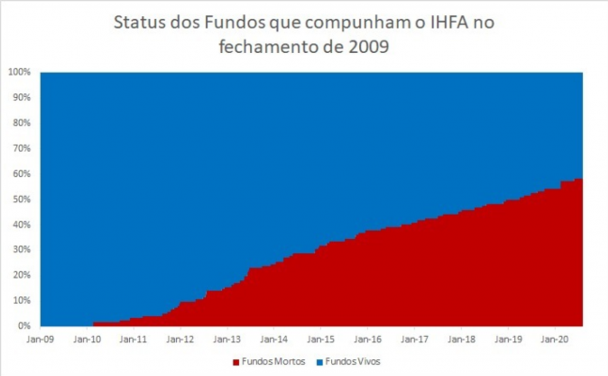 A carteira teórica do IHFA no último trimestre de 2009 era composta por 122 fundos. Desses, 72 tiveram suas operações descontinuadas em algum momento até julho de 2020.