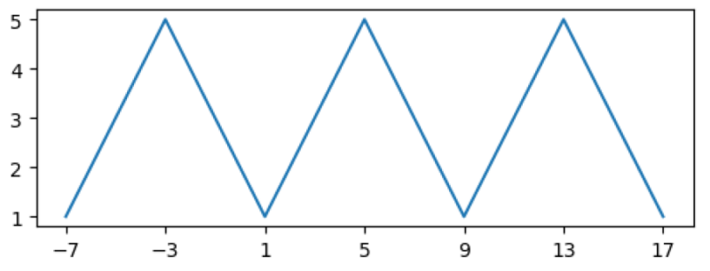 Agora fica evidente o por quê da probabilidade do pássaro estar nas pontas converge para metade da probabilidade de estar em uma mesa do meio: cada período da associação mesa↔inteiro tem apenas 1 inteiro associado às mesas 1 e n, mas dois inteiros associados às mesas do meio (visualmente, um na “subida" e outro na “descida").